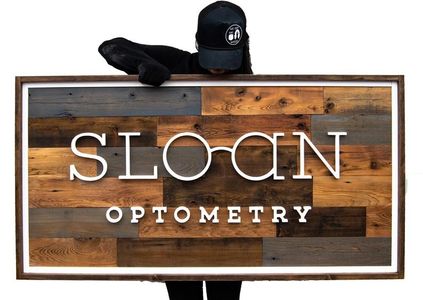Just like a wildwood forest, our business sign's uncultivated yet appointed wood pattern makes it truly one-of-a-kind. Our Wildwood comes as an interior or an upgraded exterior style. The Exterior sign is built with all waterproof exterior materials including HDPE raised letters. All of our Wildwood signs are faced with 100% reclaimed fence wood from all around the Pacific Northwest. There are many stories in these boards and it only adds to the beauty.